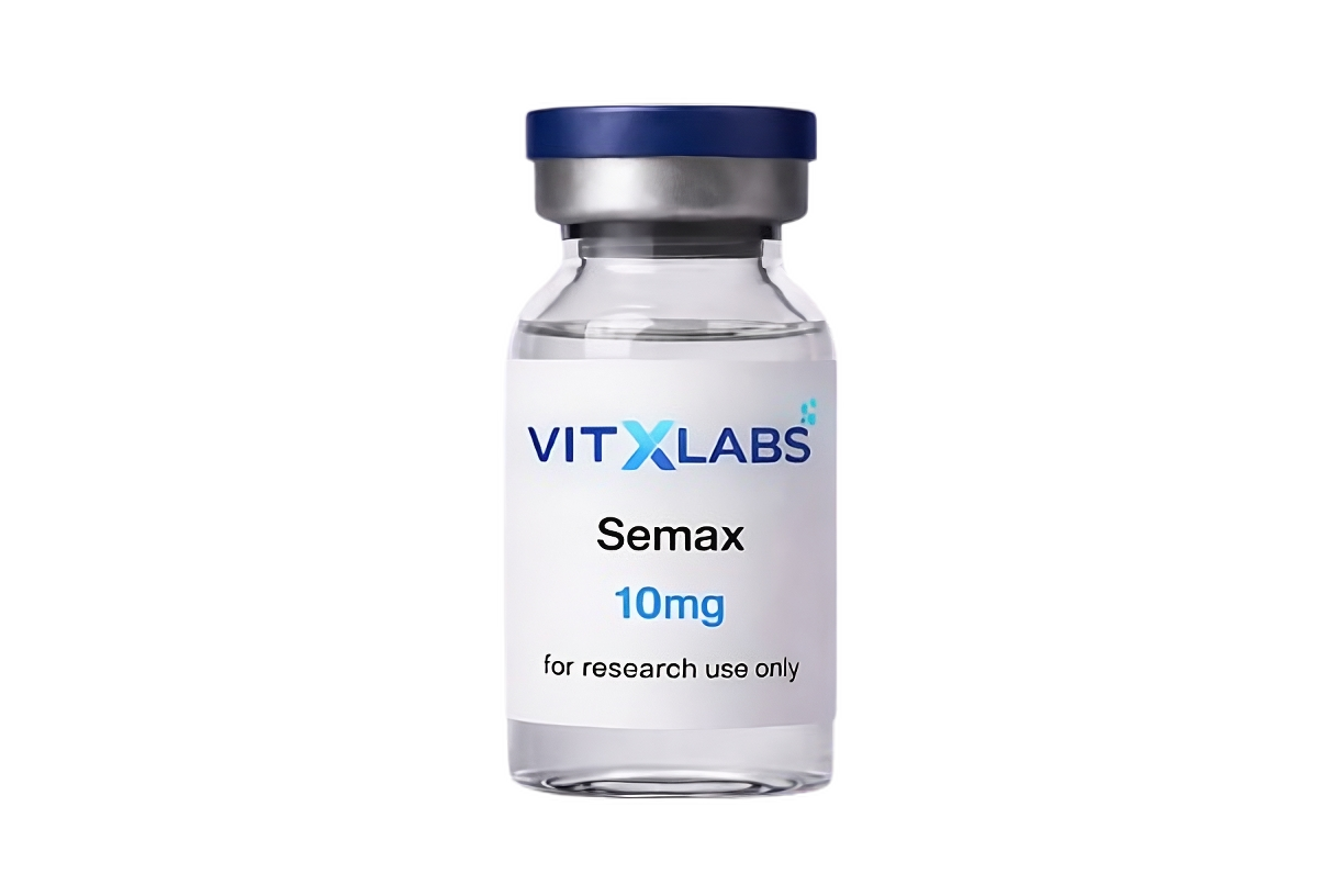Lyophilized Semax (5mg) for research use. A synthetic ACTH(4-10) analog studied in neurotrophic signaling and cognitive function research.